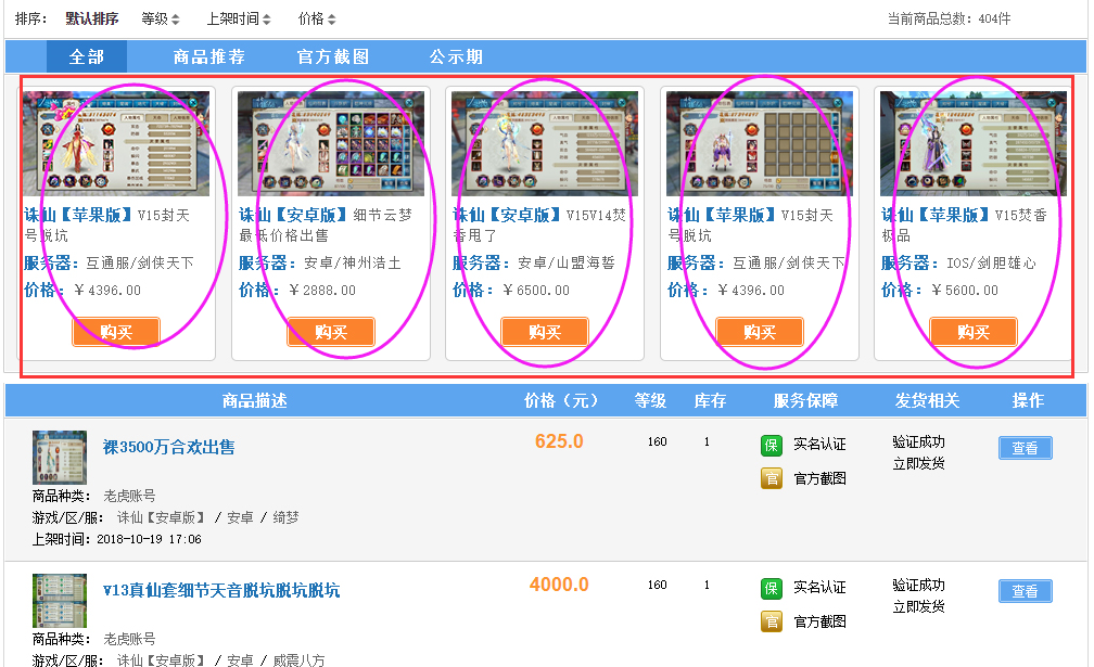【官方认证】在商品列表页有特殊标识,排名靠前,更有专业的客服为您截取角色图片,让更多的买家看到您全面的角色信息。