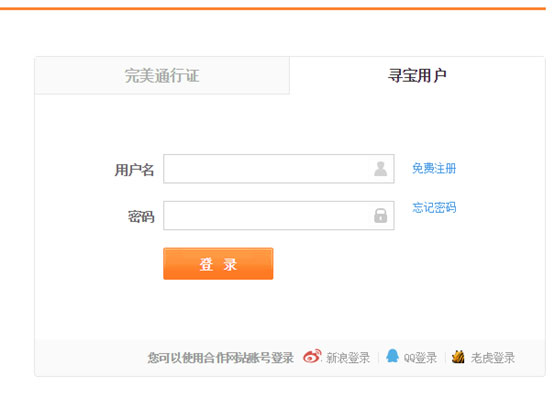 “寻宝天行”和“寻宝支付”目前只支持“完美通行证”登录。
