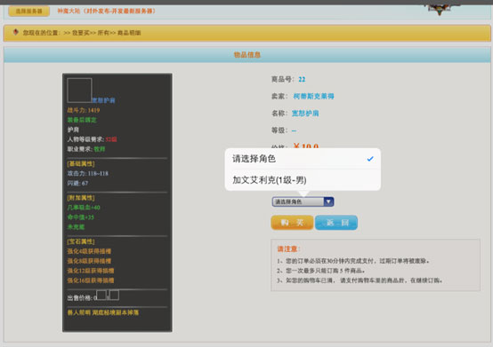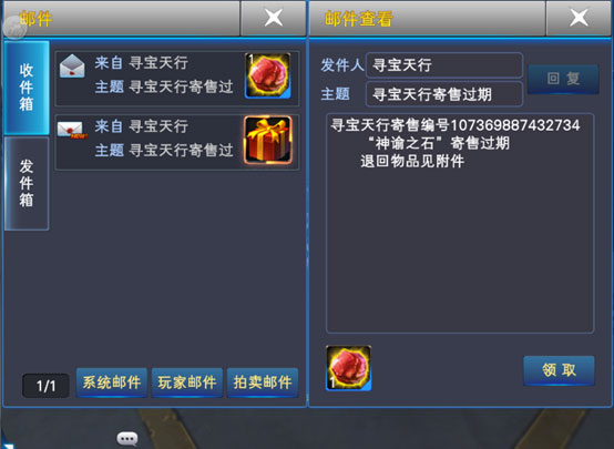 八、买家确认付款,交易成功之后,进入游戏后通过游戏内邮件领取商品。