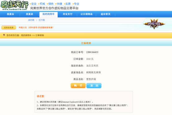 对暂时未进行支付或放入购物车的订单,在订单失效之前,玩家都可以在“我的购物车>>>>未付款”查看并进行支付。