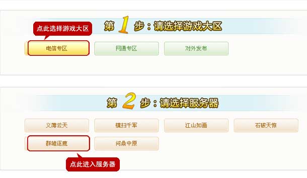 2.选择游戏“倚天屠龙记”,选择游戏大区下相应的服务器