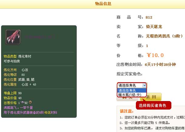 返回“角色寄售说明”>>