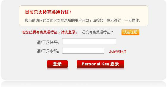 “寻宝天行”和“寻宝支付”目前只支持“完美通行证”登录。