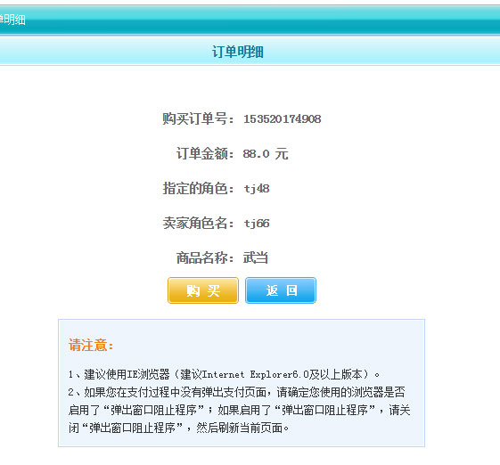 5、选中要购买的角色后,单击“购买”按钮,进入付款流程。