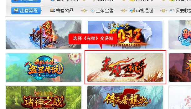 1、 登录寻宝天行(www.xunbao178.com),选择《赤壁》交易站。
