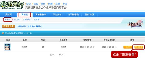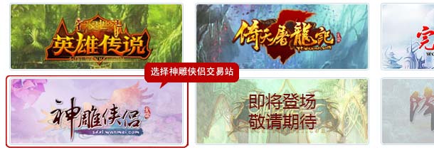 1、在寻宝天行(www.xunbao178.com),首页选择《神雕侠侣》交易站。