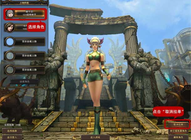 4、登陆《神鬼世界》游戏客户端,选择曾在出售的角色,点击“取消挂单”按钮,提示“订单取消成功”。取消寄售保证金扣除不予返还。