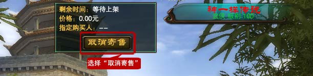4、登录《完美世界》客户端,选择正在出售的角色,点击取消寄售,提示保证金将作为服务费扣除,选择“是”完成取消寄售操作。