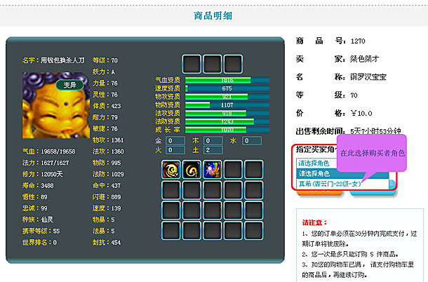 5.选定物品后,点击“购买”按钮会进入装备的详细信息页面