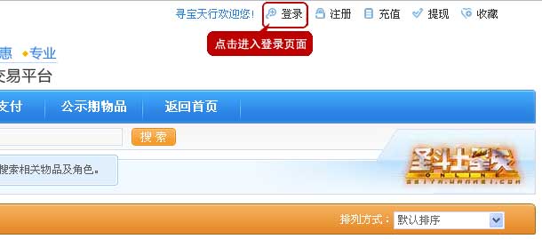 一、登录寻宝天行(www.xunbao178.com),选择《圣斗士星矢》交易站。