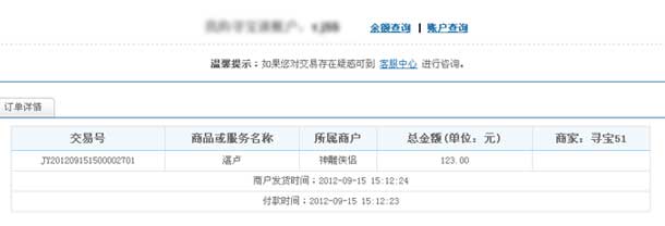 七、系统提供了多种支付方式:寻宝支付 付款,快钱账户付款,支付宝账户付款。每笔交易只能选择其中的一种方式进行支付。若“寻宝支付”账户余额不够支付所需金额,则本次交易只能使用其他付款方式全额付款,或者向“寻宝支付”账户充值后再由“寻宝支付”余额付款。