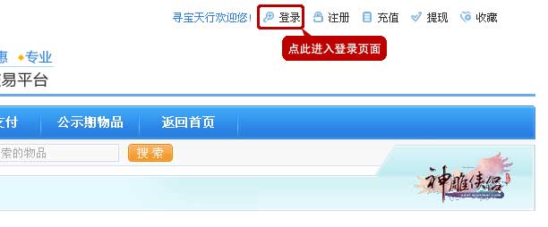 一、登录寻宝天行www.xunbao178.com,选择《神雕侠侣》交易站。