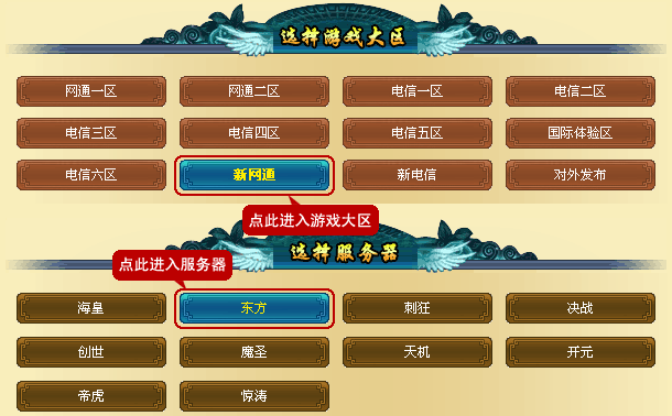 2.选择游戏大区并选择游戏大区下相应的服务器