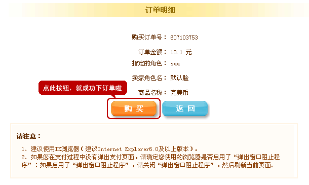 8.买家确认付款,交易成功之后,您所购买的物品将通过游戏邮件系统发放。