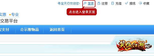 一、登录寻宝天行(www.xunbao178.com),选择《笑傲江湖》交易站。
