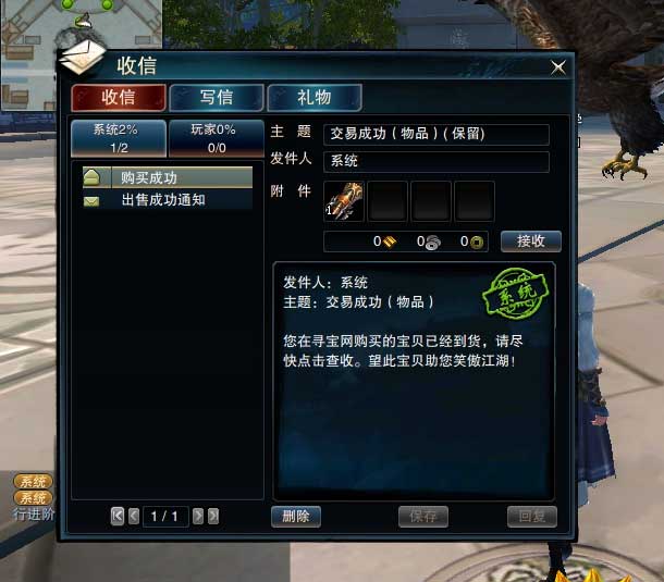 八、买家确认付款,交易成功之后,您所购买的物品将通过游戏内邮件的方式发放。