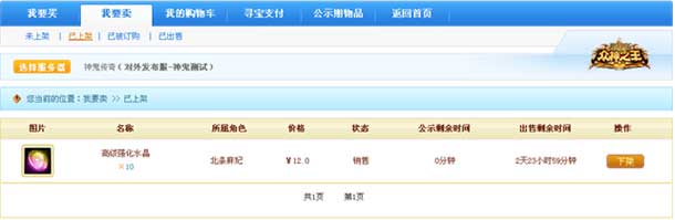 四、点击页面上方导航“我要卖>>已上架”,可以查看到在游戏中或在交易平台中已经上架的物品。