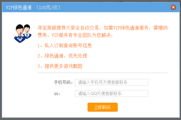 4. 点击“立即购买”按钮进入填写订单页。因寻宝商城购买和销售商品均有交易动态通知,请务必先到 “个人中心-个人设置-手机绑定”绑定真实有效的手机号才能完成交易,否者无法购买。本页要求 快速注册全新完美世界游戏账号用来接收购买的账号信息。购买成功后,请用本账号登录完美世界游戏官方网站(laohu.com)查收所账号信息。如忘记填写账号内容可以在 “个人中心-我是买家-交易记录-订单详情”中查看账号和昵称,密码可以在完美世界游戏官网正常修改。