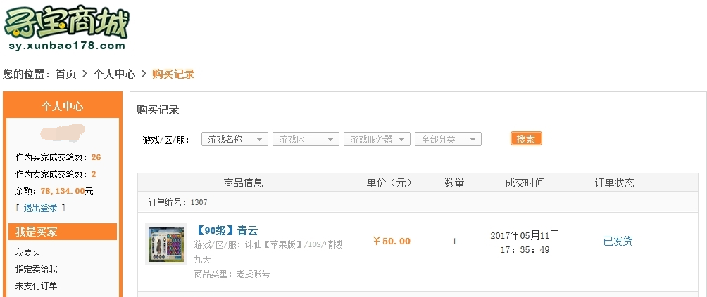 9. 在“个人中心-我是买家-购买记录”中查看订单处理结果。
